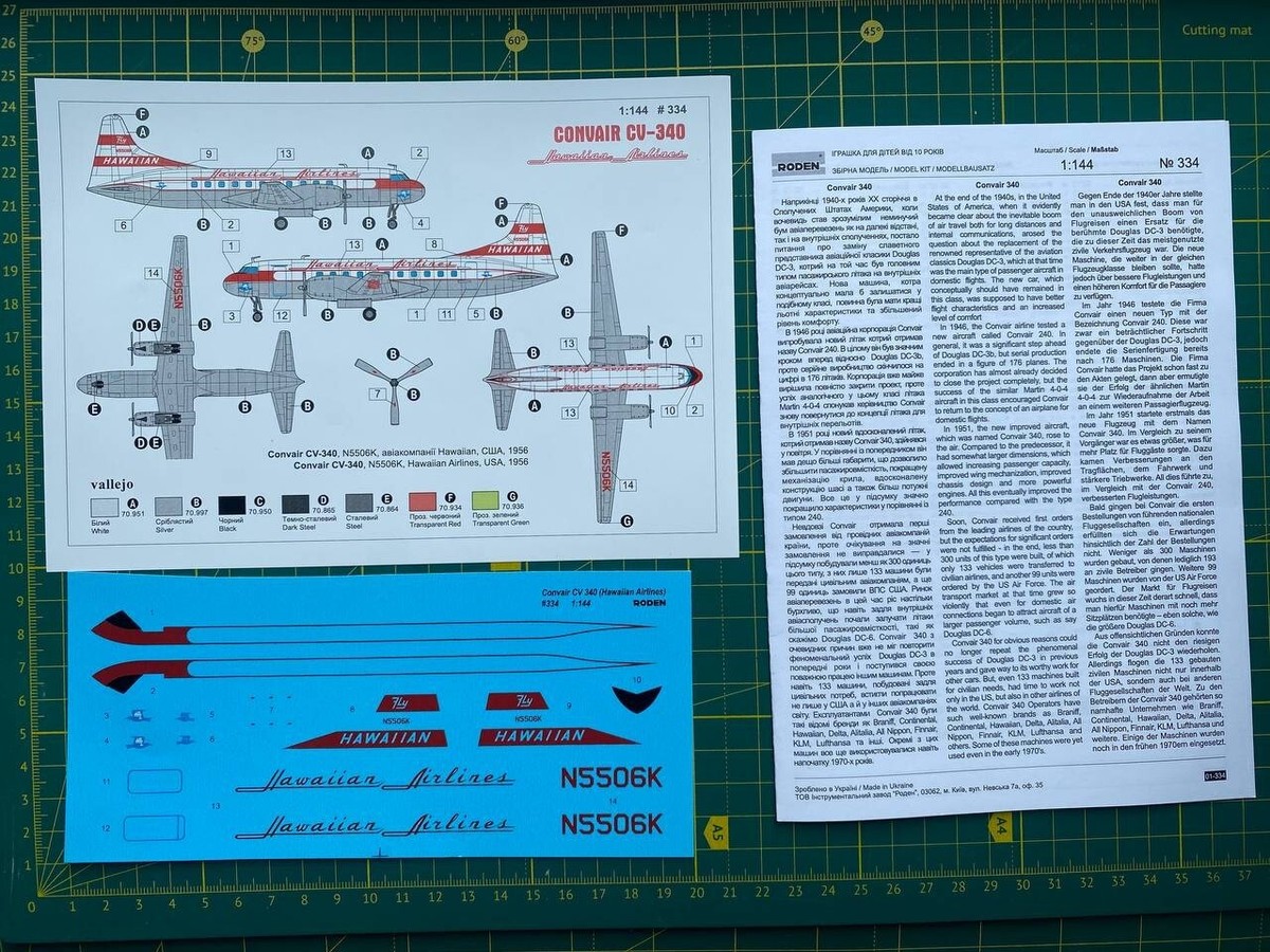 Convair Cv 340 Hawaiian Airlines Civil Aircraft 1 144 Scale Model Kit Roden 334 Ebay